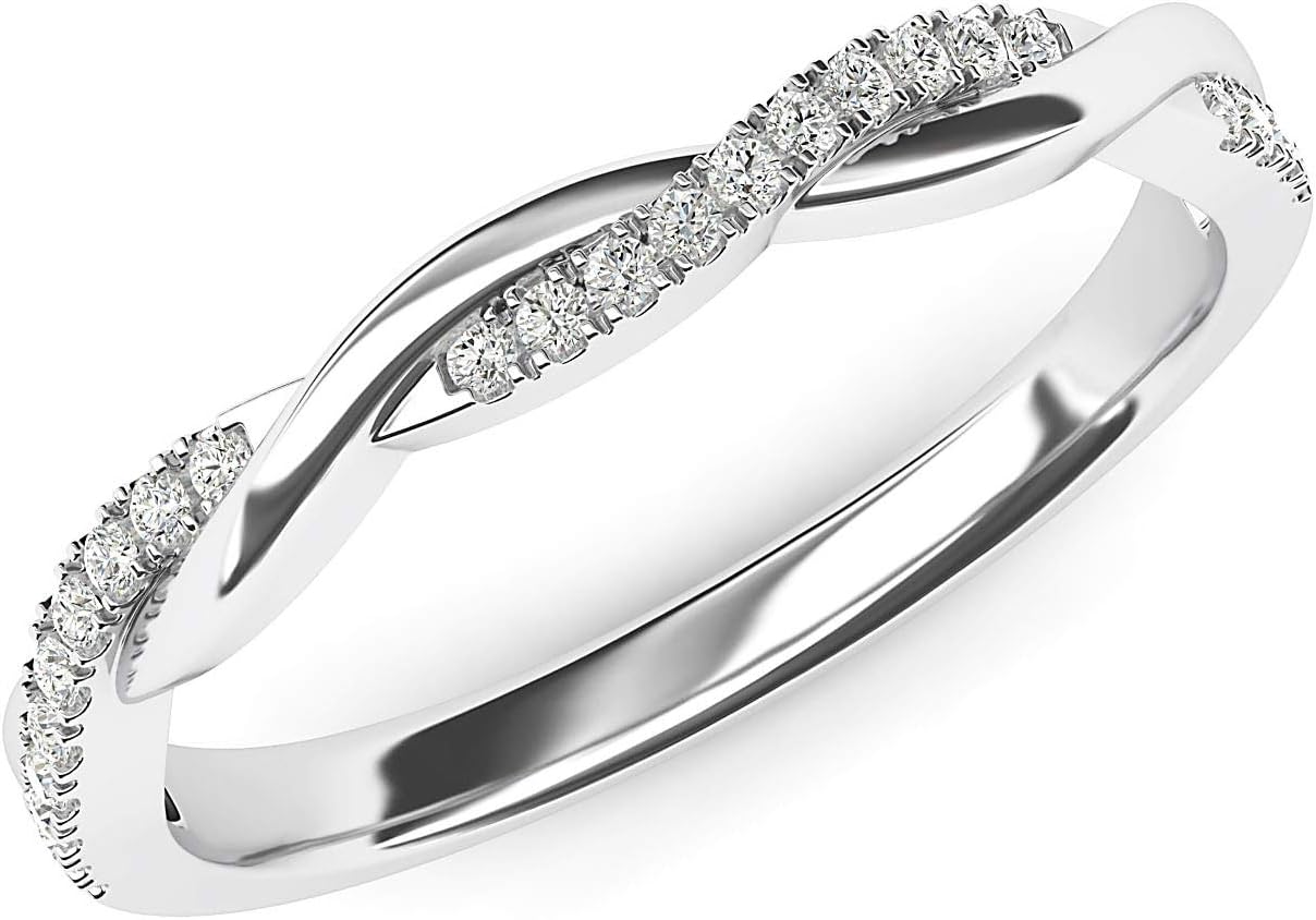 • This pure 14k White Gold 2.5mm Petite Twisted Vine Genuine Moissanite Ring is highly polished. It is pavé-set with 24 round brilliant cut clear Genuine Moissanites in total. The special twisted vine band measures 2.5mm in width. Unlike other items, all stones in this ring are moissanites, reflecting the sparkle same as diamonds do, which is very nice and attractive, making the ring look like real diamond ring.