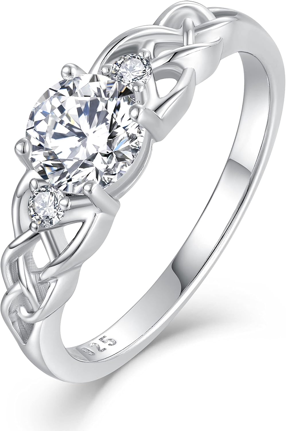 - This celtic knot ring set with 2 pieces 2mm and 1 piece 6mm round-brilliant-cut AAAAA cubic zirconia.